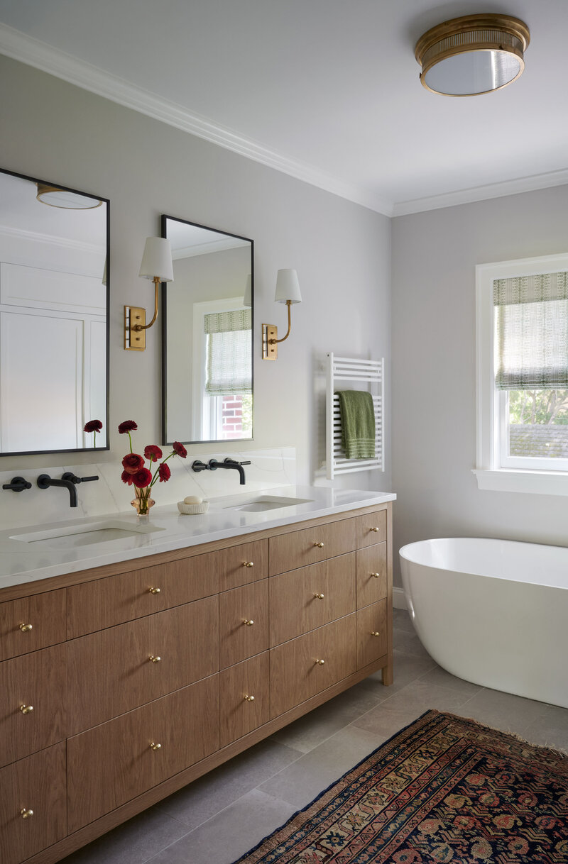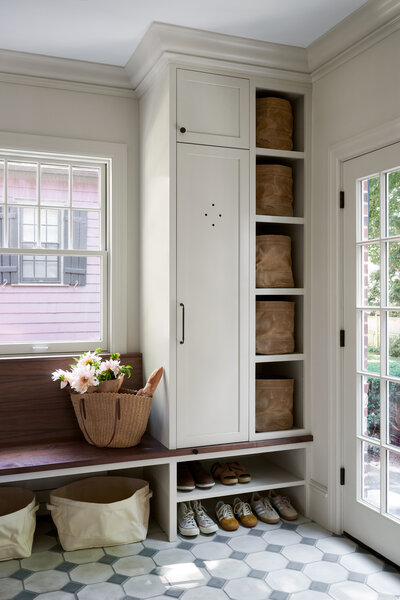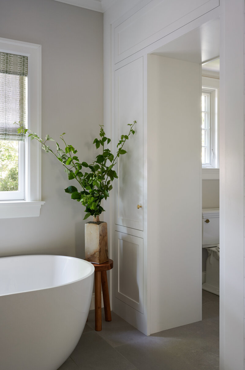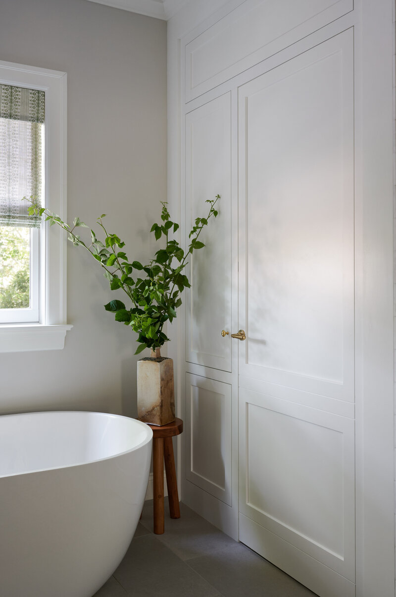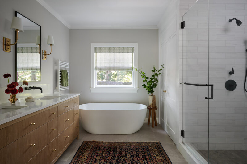 Sometimes, it’s the quiet details that speak the loudest. This serene home leans into soft whites and calming neutrals, creating a sense of openness and light from the moment you step inside. A moody, dark butler’s pantry adds unexpected depth, functioning as both a prep space and a design statement. The mudroom was designed with real life in mind: durable finishes, smart storage, and just enough style to make utility feel elevated. In the bathroom, tone-on-tone textures and timeless materials create a space that feels like a retreat - subtle, sophisticated, and quietly luxurious.